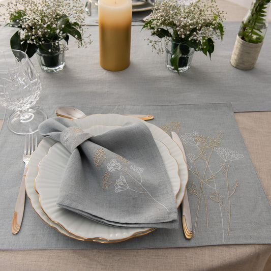 Tokanui Linen Cocktail Napkins Aqua Grey