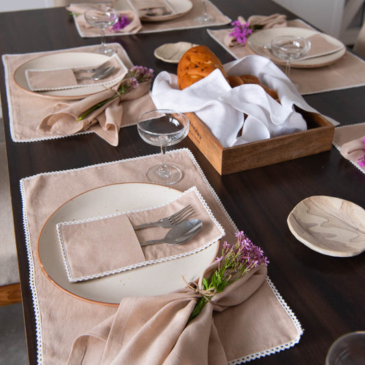 Beaumont Single Pocket Linen Cutlery Holders Natural