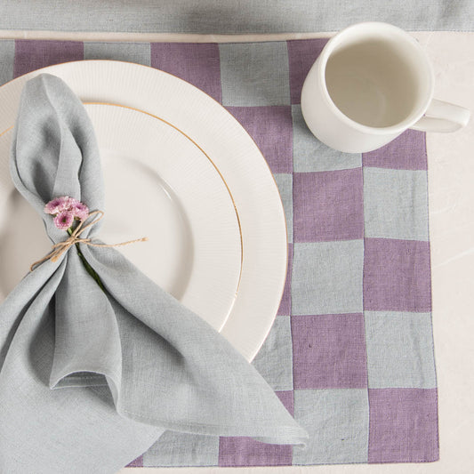 Cardrona Linen Table Mats Aqua / Amethyst Checkerboard