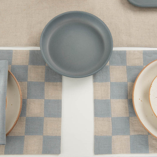 Cardrona Linen Table Mats Aqua / Natural Checkerboard