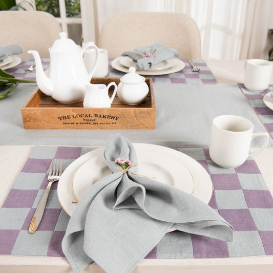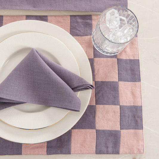 Cardrona Linen Table Mats Rose / Amethyst Checkerboard