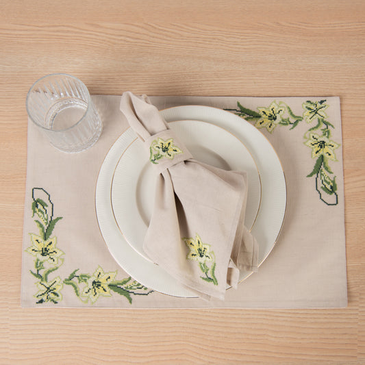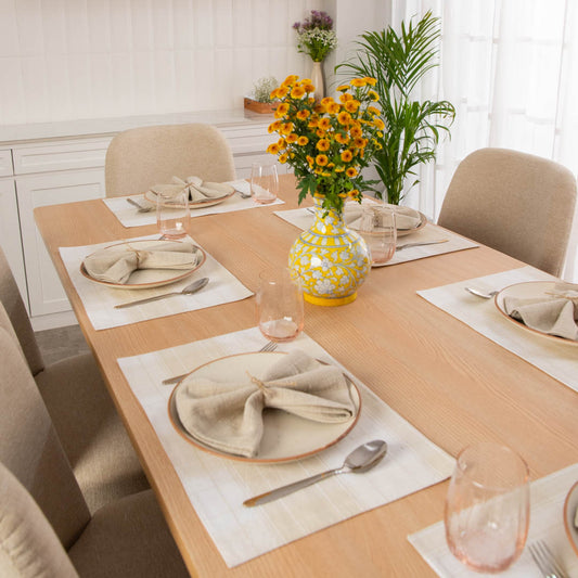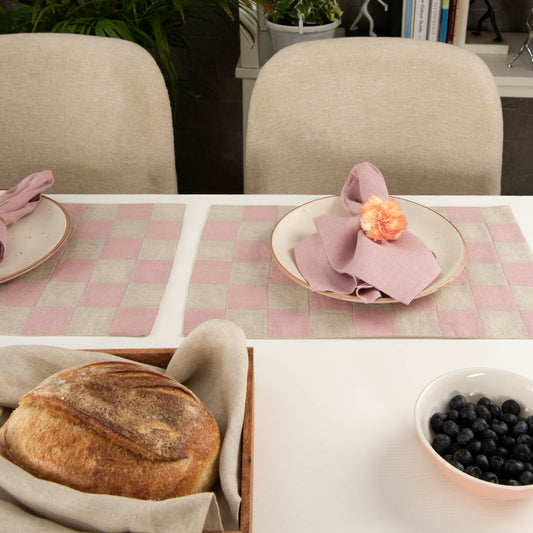 Cardrona Table Linen Set Rose / Natural Checkerboard