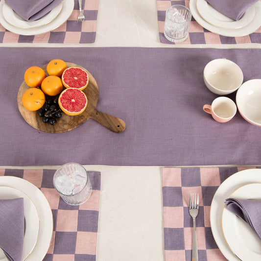 Cardrona Table Linen Set Rose / Amethyst Checkerboard
