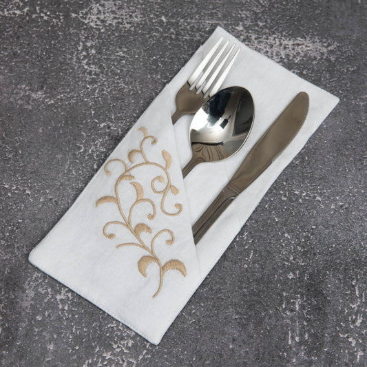 Henley Double Pocket Linen Cutlery Holders White